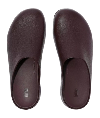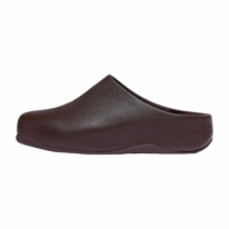 Sabots FitFlop Femme Shuv Tumbled-Leather Clogs Chocolat