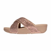 Sandales FitFlop Femme Lulu Crinkled-Shimmer Cross Slides Metallic Classic Beige